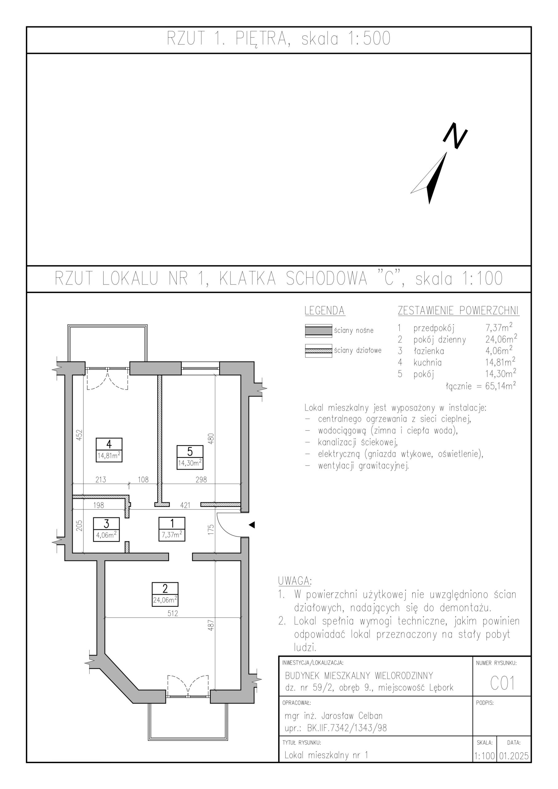• Dokładna powierzchnia m2 65,14
